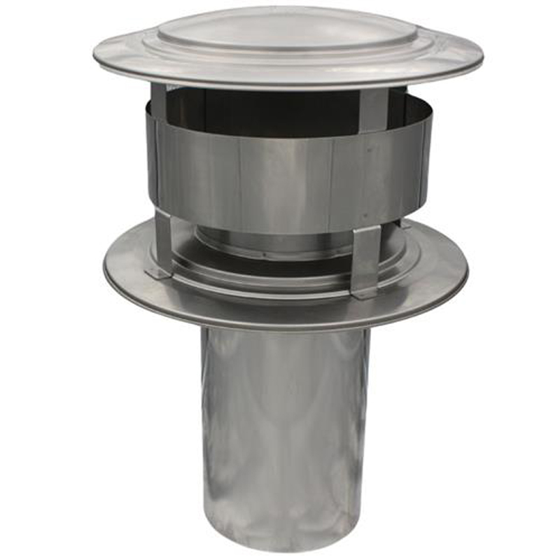 Deze kap wordt gebruikt bij installaties die extra bescherming nodig hebben tegen neerslag of waar de trek in het kanaal verbeterd moet worden, bijvoorbeeld bij lage schoorstenen.
