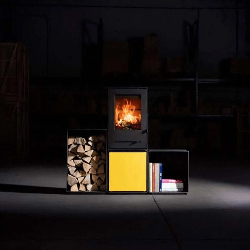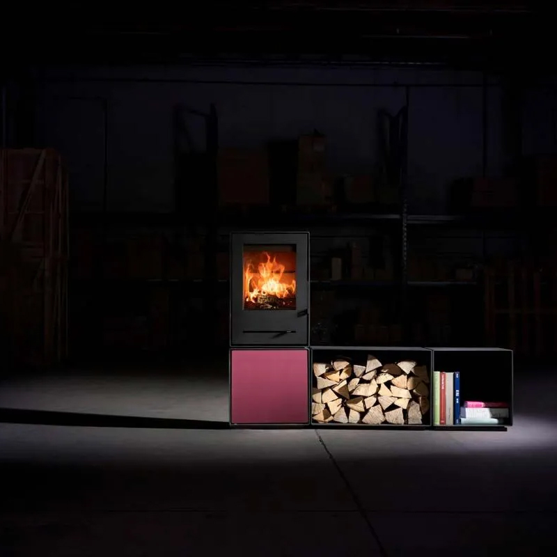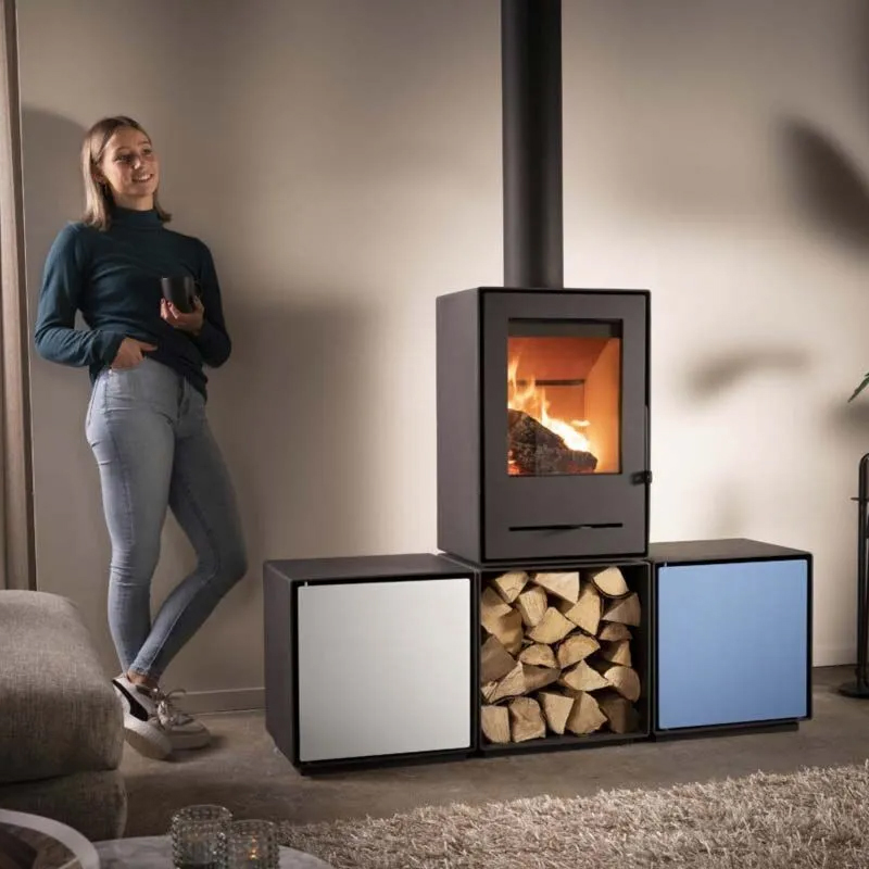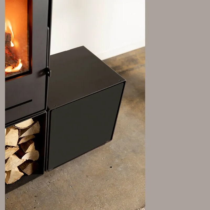 De Trimline Woody Grid S is een vrijstaande, modulaire houtkachel met een strakke en functionele onderbouw. Deze onderbouw—een robuust blok met dezelfde diepte en breedte als de kachel zelf (35,5 x 45 cm) en een hoogte van 45 cm—vormt de solide basis van dit compacte model. Dankzij de mogelijkheid van zowel boven- als achteraansluiting kan de kachel flexibel in diverse ruimtes worden geplaatst.