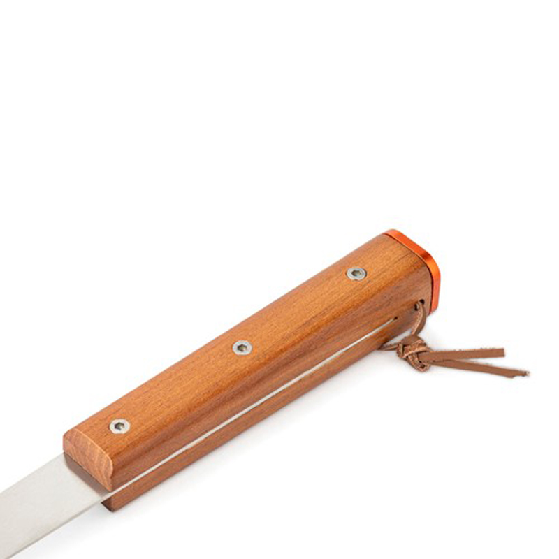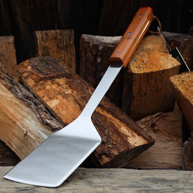 Gemaakt van duurzaam roestvrij staal met een stevige houten handgreep biedt deze spatel optimale grip en controle. Een onmisbaar stuk gereedschap voor iedereen die houdt van precisie, veiligheid en stijl aan de BBQ.
