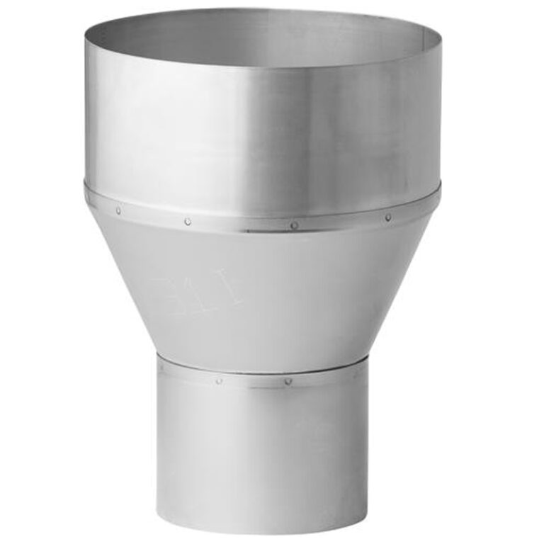 Dit verloopstuk is geschikt voor installaties waarbij een grotere kacheluitgang moet worden aangesloten op een rookkanaal met afwijkende diameter. Het garandeert een luchtdichte aansluiting.