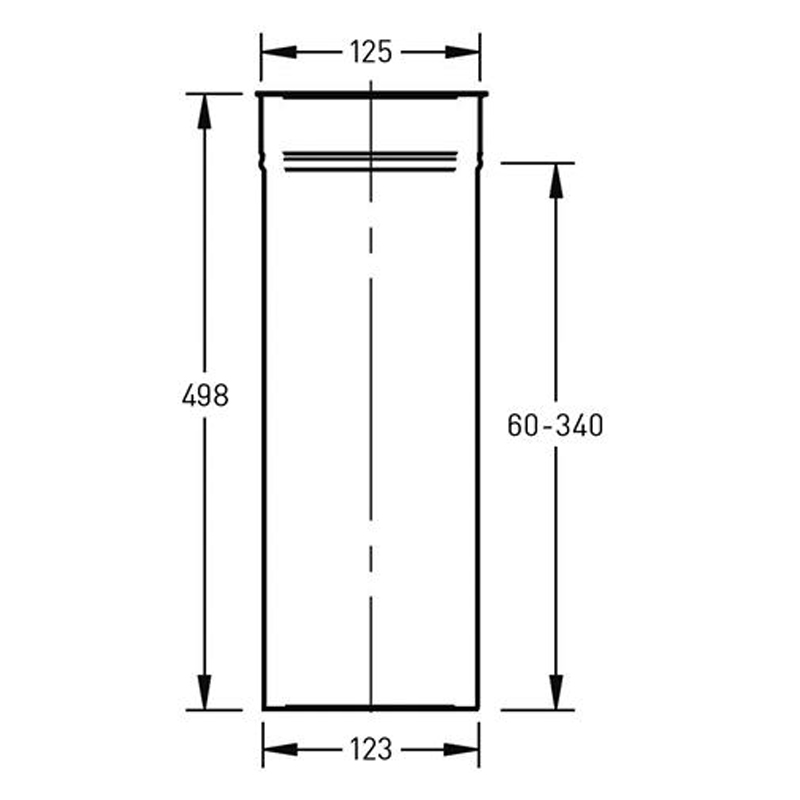 De Verstelbare Paspijp Ø125 mm – 60 tot 500 mm – Enkelwandig RVS is een in lengte verstelbare rookgaspijp, gemaakt van roestvrij staal, geschikt voor Ø125 mm aansluitingen.