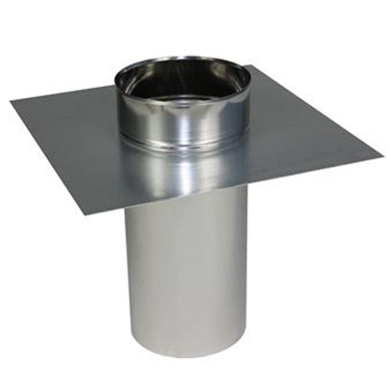 Een vloerplaat wordt gebruikt om de opening rond een rookgasdoorvoer af te werken en te beschermen tegen hitte en vuil.