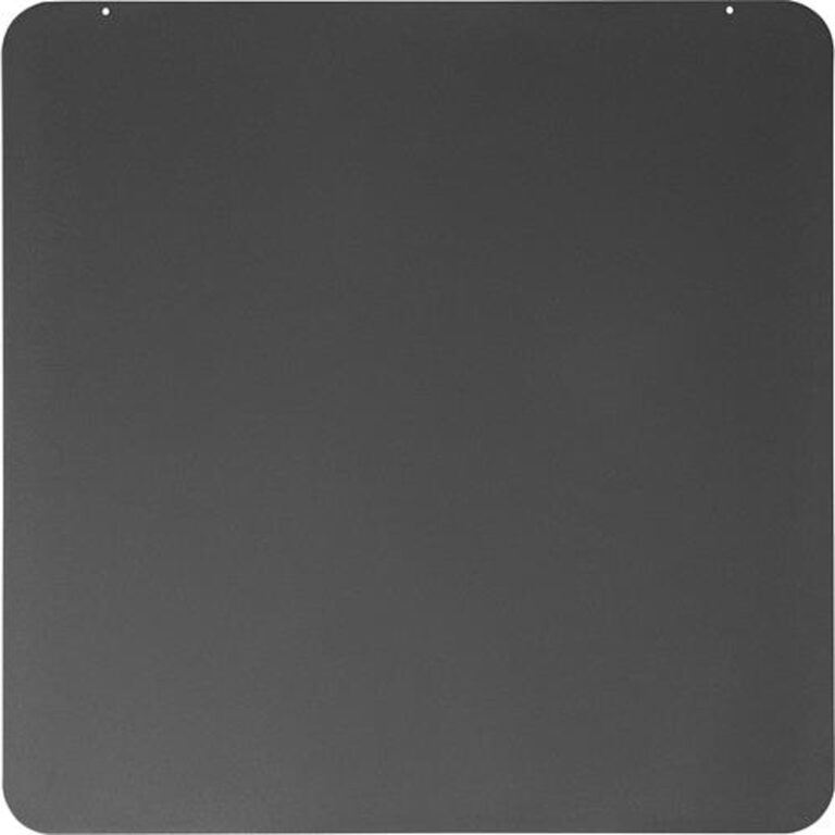 De vierkante vorm maakt deze vloerplaat praktisch voor plaatsing tegen een wand of in een hoek, terwijl het 2 mm dikke staal zorgt voor een duurzame, stevige bescherming. De subtiele antracietkleur vormt een stijlvol alternatief voor klassiek zwart, met behoud van een neutrale uitstraling.