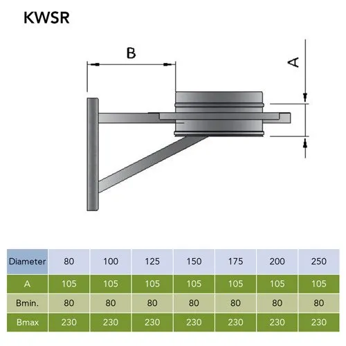 Je gebruikt deze wandconsole om het rookkanaal stabiel te bevestigen en uit te lijnen langs een muur. De verstelbaarheid maakt hem inzetbaar bij diverse gevelconstructies. Het zorgt voor een veilige en nette montage, ook bij afwijkende afstanden. Zo blijft het kanaal stevig en recht, ongeacht de montagehoogte.